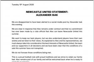 纽卡官方:从未承诺伊萨克可在今夏离队,明确表示转会条件未达成
